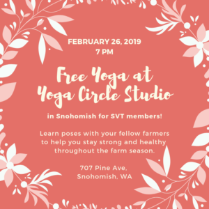 Join other SVT members for a free yoga class hosted by Yoga Circle’s Karen Guzak. We’ll learn some basic poses with fellow farmers to help you stay strong and healthy throughout the farm season.
