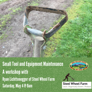 Join us for an in-person workshop on Small Tool and Equipment Maintenance with Ryan Lichttenegger of Steel Wheel Farm on Saturday, May 4 from 9am -12pm.